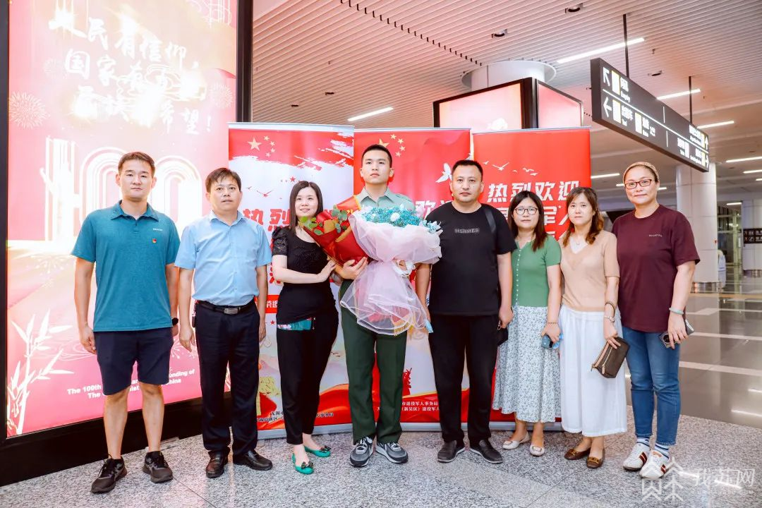 空港经开区(硕放街道)退役军人服务站提前与退伍士兵家人联系,确认退伍士兵到站时间地点,在苏南国际硕放机场、无锡东站等安排了简单而又温馨的返乡欢迎仪式。工作人员与退伍士兵的家人们一起到车站迎接,为他们戴上“光荣退役”的绶带,送上鲜花和大礼包并合影留念,让退伍回乡的士兵充分感受家乡人民的热情。