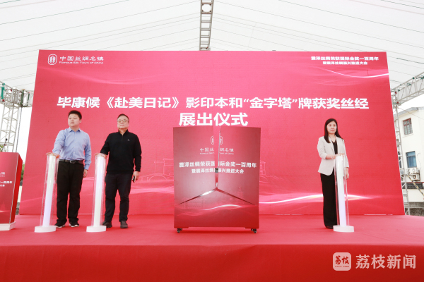 100年前,震泽丝商代表毕康侯沿頔塘河出发,远赴美国参加万国丝绸博览会并一举获得金奖,从此一根“震泽丝”登上了国际舞台,连接起了世界。10月12日下午,纪念震泽丝绸荣获国际金奖一百周年暨震泽丝绸振兴推进大会在苏州吴江区頔塘河畔召开,弘扬百年前震泽丝商勇于开拓的进取精神,传承蚕桑文化,激扬奋进力量,推进丝绸振兴,擦亮“中国丝绸名镇”金字名片。