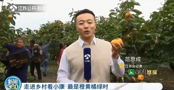 江苏台记者范思成说:“金秋时节,如果到盐城市恒北村,一定要到柿子林看看,丰硕橙黄的柿子挂满了枝头。全村共种植了1500亩柿子,年产量5000吨,后续将销往山东、吉林、江西等全国各地。”