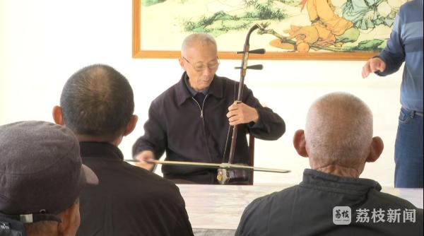 在潘黄街道养老服务中心,今年67岁的陈正江老人正和养老服务中心的老人们自发地聚在一起进行文艺表演,台上的老人铆足劲表演,台下的老人热情喝彩,现场热闹非凡。