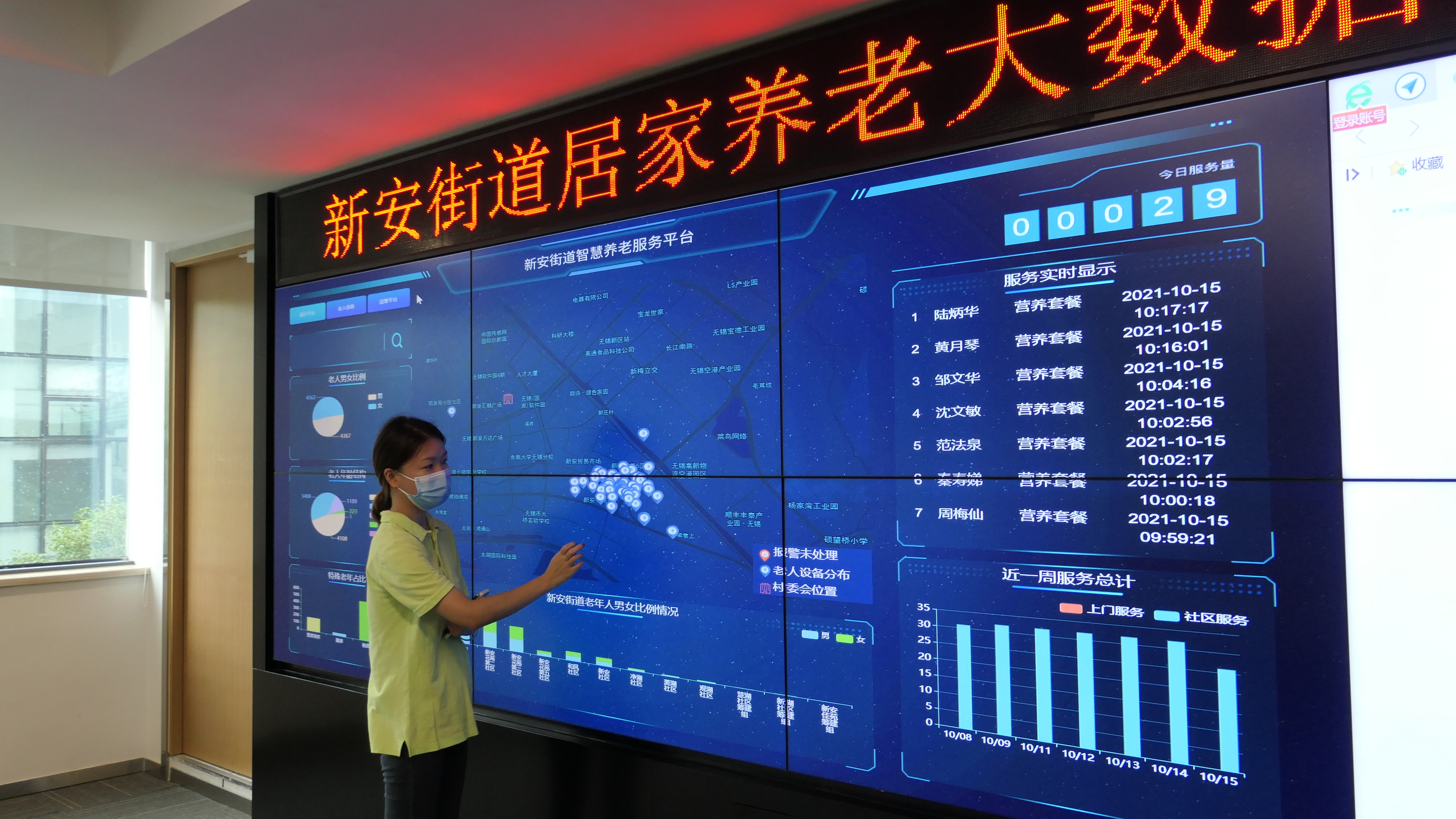 新安街道新推出的家庭照护病床,还推出了一项随叫随到的应急服务,给有需求的老人提供一个智能手坏,老人可以通过手环上的呼救按钮,通过大数据中心向附近的养老机构派单,及时解决。