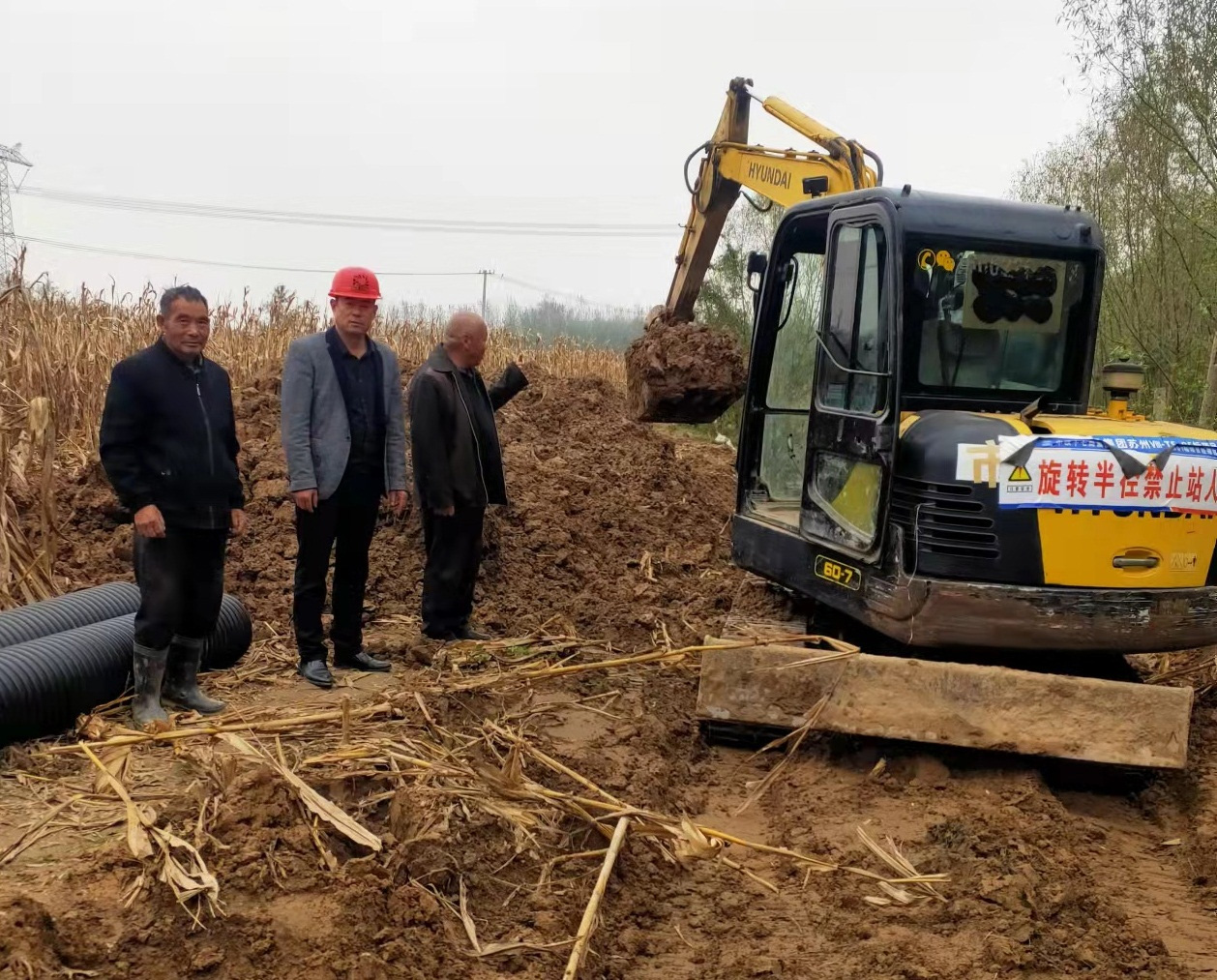 雨稍微停歇,刘天桥书记就多方奔走,向上级申请资金、联系施工人员,从戴楼中组到周庄寨村陈集组西沟,铺设了400多米的管道,把村内积水排入河中,切实解决了村民的生产和生活困难,消除了暴雨积水的后患。天气放晴之后,动用机械新开挖排水沟,清除沟渠内的杂物和杂草,全面保障排水通畅,切实提高除涝能力,有效地缩短了播种等待期,确保了村民不误农时抢种小麦。