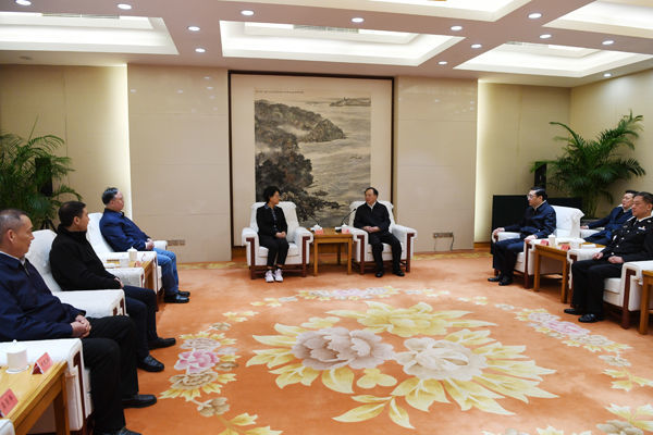 Wu Zhenglong, secretary of the CPC Jiangsu Provincial Committee, met with QiaoChuanxiu, head of the 6thsupervision group of the CPC Central Committee for the Nationwide Education and Rectification of the Political and Legal Teams.