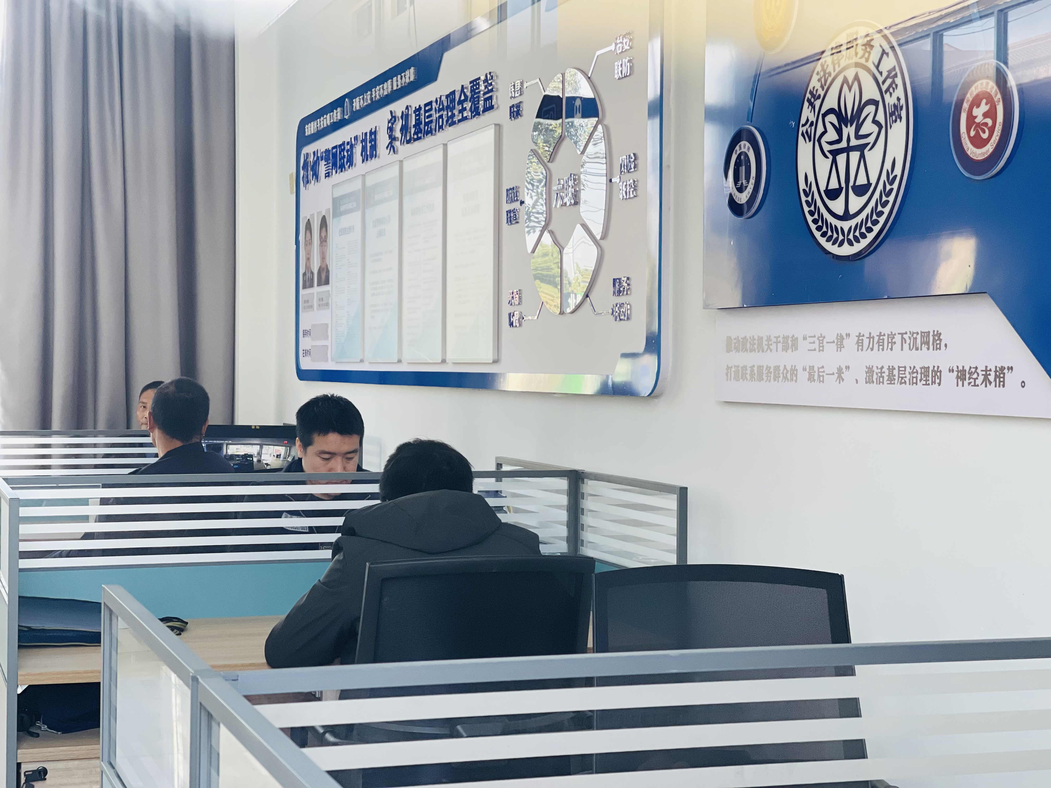 新建成的警务室内设置了网格责任区块图、工作站力量融合指示图,明确网格分工,进一步深入落实“大数据+网格化+铁脚板”治理机制,深化网格警格指挥体系、责任体系、力量体系、保障体系融合联动,聚焦平安稳定、突出共建共治,着力将网格建造成为感知风险第一触角、化解矛盾第一阵地、守护安全第一防线、服务群众第一窗口,用网格的“小平安”构建“大平安”。