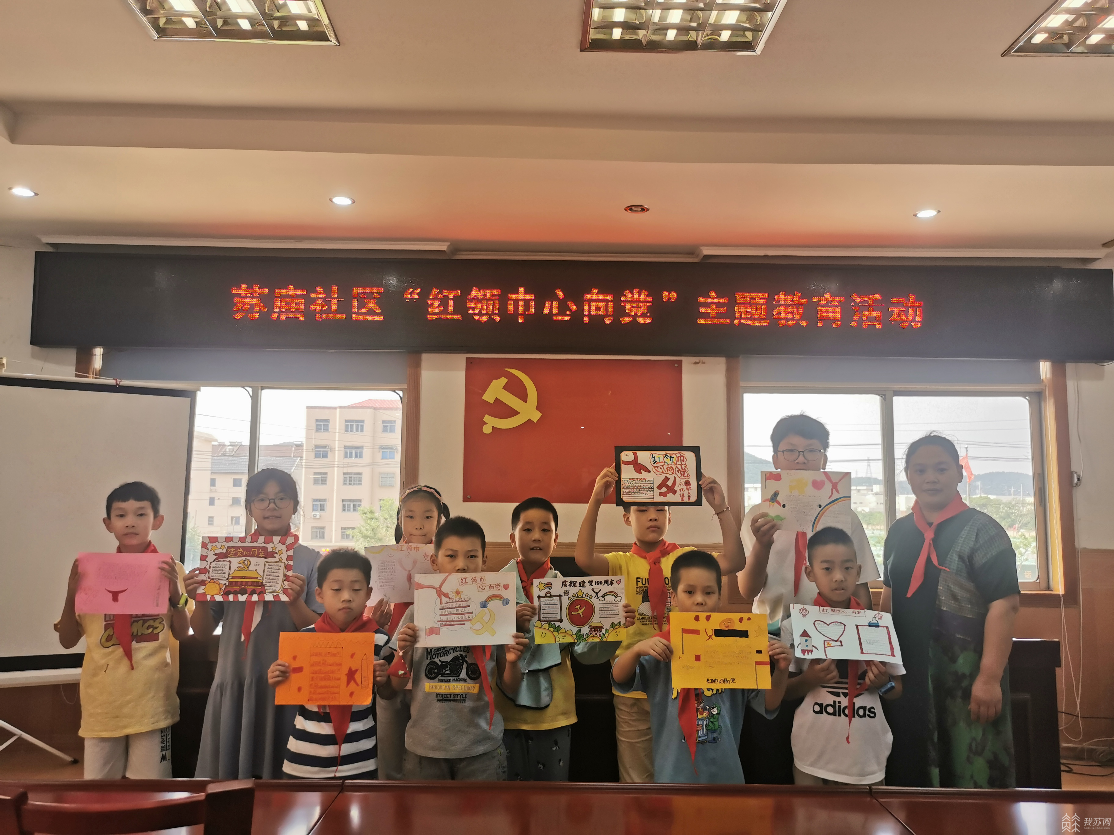 “中国共产党的故事需要从一条小红船说起……”专注于退休老教师陈玲凤的生动讲述,孩子们感受着“红船故事”里共产党人开天辟地、敢为人先的首创精神,坚定理想、百折不挠的奋斗精神以及立党为公、忠诚为民的奉献精神。跟随青年志愿者老师的指导,孩子们化身“书画家”、“小歌手”,围绕“忆党史、铭党恩、听党话、跟党走”,从不同角度画下对党、对祖国、对家乡的热爱,唱出《没有共产党就没有新中国》《我是一个红领巾》等等一首首耳熟能详的旋律。在苏庙社区小小的活动室里,孩子们通过红色故事会、手工制作、歌咏比赛等形式,浸润“人人学党史、人人颂党史”的良好学习氛围,在红色文化的熏陶中实现知行合一。