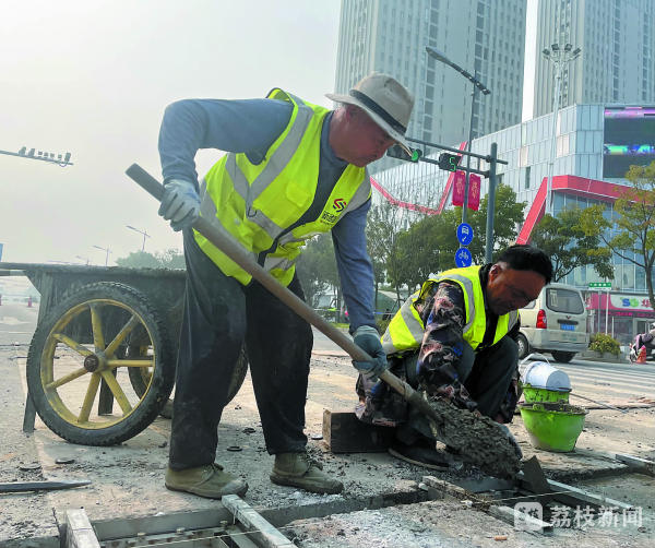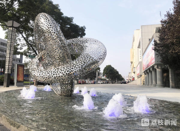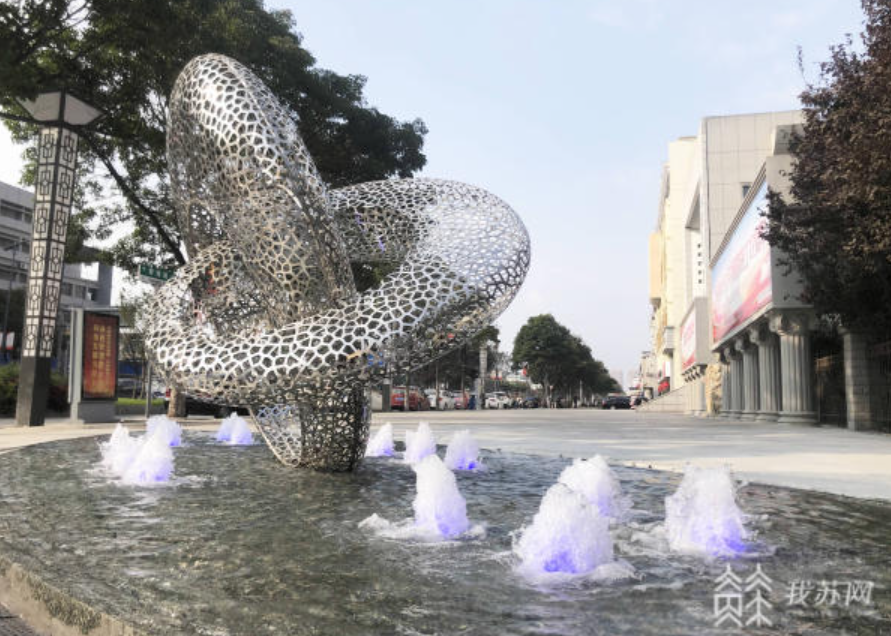“晚上走在淮河路,有流光溢彩的雕塑小品,有转角休憩的长廊,有随着音乐跳动的喷泉,还有会发光的斑马线,真漂亮!”11月2日晚,打造中的盐城市响水县淮河路网红街上,新架设的路灯、干净清爽的彩色路面、粉刷一新的墙体外立面,让住在附近的居民张文娟不住称赞。