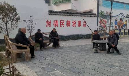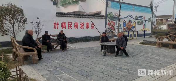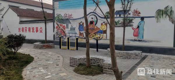 11月3日,记者在敬安镇韩大楼村文化休闲广场看到,乡村大舞台、健身器材、路灯等设施一应俱全,墙上的宣传画和周围的绿化景观互相映衬,村民们三五结伴聚在一起,或在广场上聊天,或在步道上漫步。