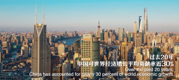 海纳百川,中国坚定开放合作,在经济全球化的时代大潮中发展自己,也与世界共享机遇。