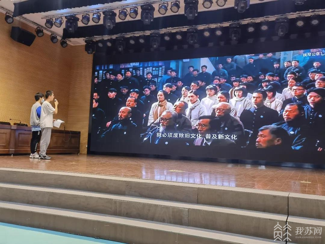 团委带领着学校选拔出来的“四史演绎员”在学校报告厅,为来自社区参与学校活动的家长代表们重现了一段五四运动爆发的片段。“四史演绎员”们通过给红色电影配音的方式再现当年的情景,在现场气氛的烘托下,小演员们慷慨激昂的配音,仿若与电影中的人物合为一体,立志要打败帝国主义、还我中华!在场的父老乡亲仿佛回到了那个特殊的年代,感慨万千!通过历史影片唤醒团员们激昂斗志,发愤图强,要为中华之崛起而奋斗,增强爱党意识,为党服务终身的决心。同时也让团员明白:这和平年代,都是上一辈的负重前行换来的,要将之保持并发扬。(来源:江苏广电无锡中心站/路明杰)