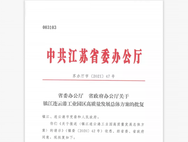 近日,省委办公厅、省政府办公厅正式批复《镇江连云港工业园区高质量发展总体方案》(以下简称《方案》),要求两地按照省委、省政府关于推动南北共建园区高质量发展的部署要求,立足新发展阶段,贯彻新发展理念,构建新发展格局,以改革开放为动力,以先进产业为根本,以机制创新为保障,充分发挥镇江连云港两地积极性和互补优势,突出主导产业定位、促进集约集聚发展、守牢安全发展底线,努力建成全省南北优势互补、共建共享的创新示范区。
