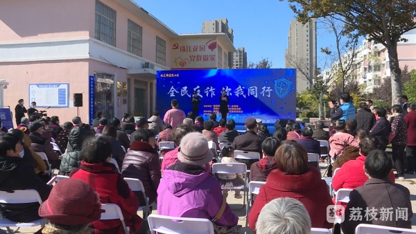 在珠江花园小区广场舞台上,精彩的魔术、舞蹈、杂技、朗诵等等节目引来现场观众的阵阵掌声。珠江路派出所的民警通过发放宣传单、解说具体案例、知识问答等形式开展反诈知识宣讲,提醒居民谨防退换物品、购物退税、刷单等电信网络诈骗。