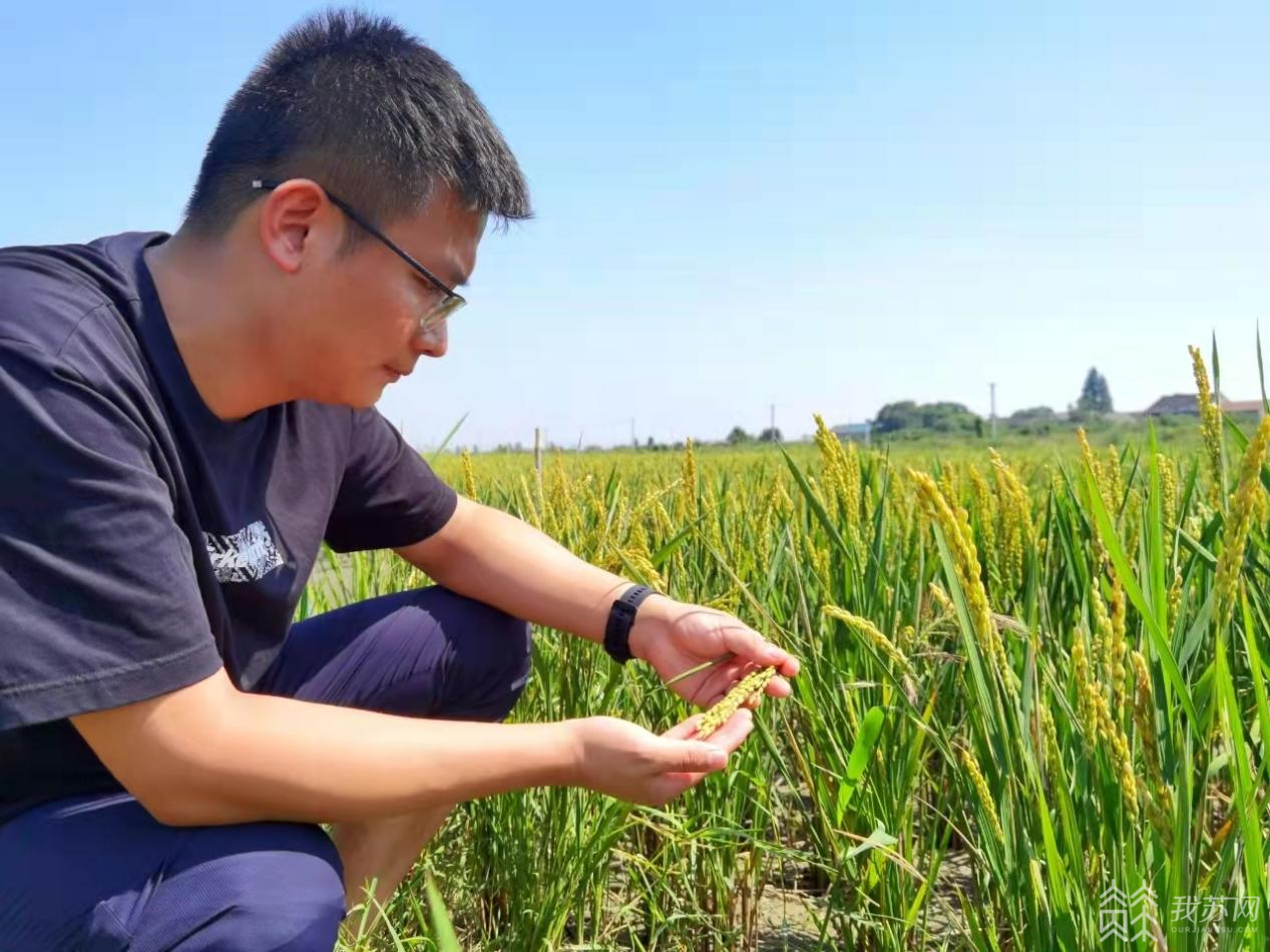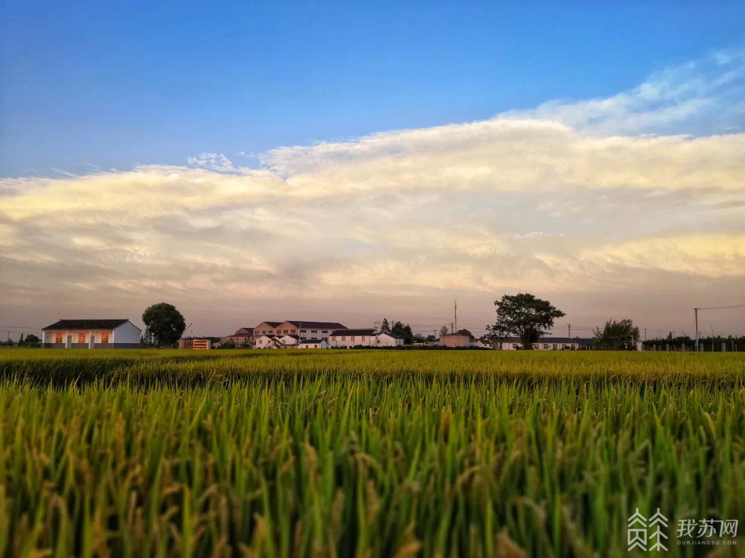 日暮时分,无锡市惠山区阳山镇住基村渔稻混养示范区内,百余亩水稻随风摇曳,稻谷迎来丰收季。