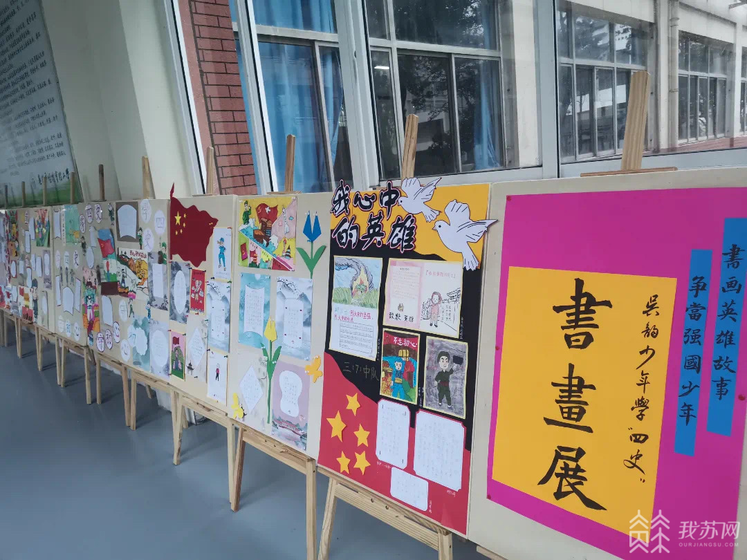 英勇斗日寇的王二小、巧送鸡毛信的海娃、刘胡兰、董存瑞、让“禾下乘凉梦”成真的袁隆平、最美逆行者、航天英雄……一个个以“吴韵红娃讲‘四史’百篇故事颂党情”中革命先烈、时代英雄为榜样的红色故事在无锡市堰桥实验小学学生的笔下被描绘。吴韵少年学“四史”书画展为“四史”学习的开展营造了良好的氛围,行走在校园内,亦是行走在“四史”教育中。