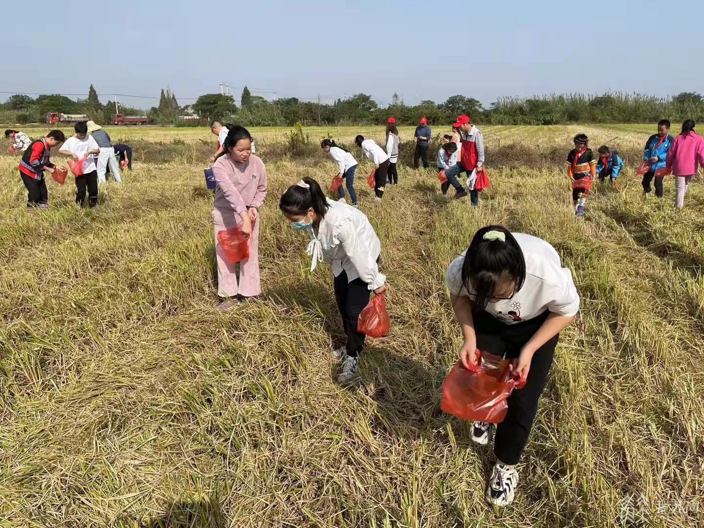 近日,在宜兴市万石镇漕东村的田间,一群佩戴红领巾的少先队员,正在刚用大型收割机收割完的稻田里,弯腰认真捡拾散落在田间的稻穗。自党史学习教育开展以来,宜兴市南漕小学党支部与宜兴市万石镇漕东村积极开展“粮收万石,珍惜每粒”党建联建活动,将珍惜粮食思政课上到田间的一个场景。