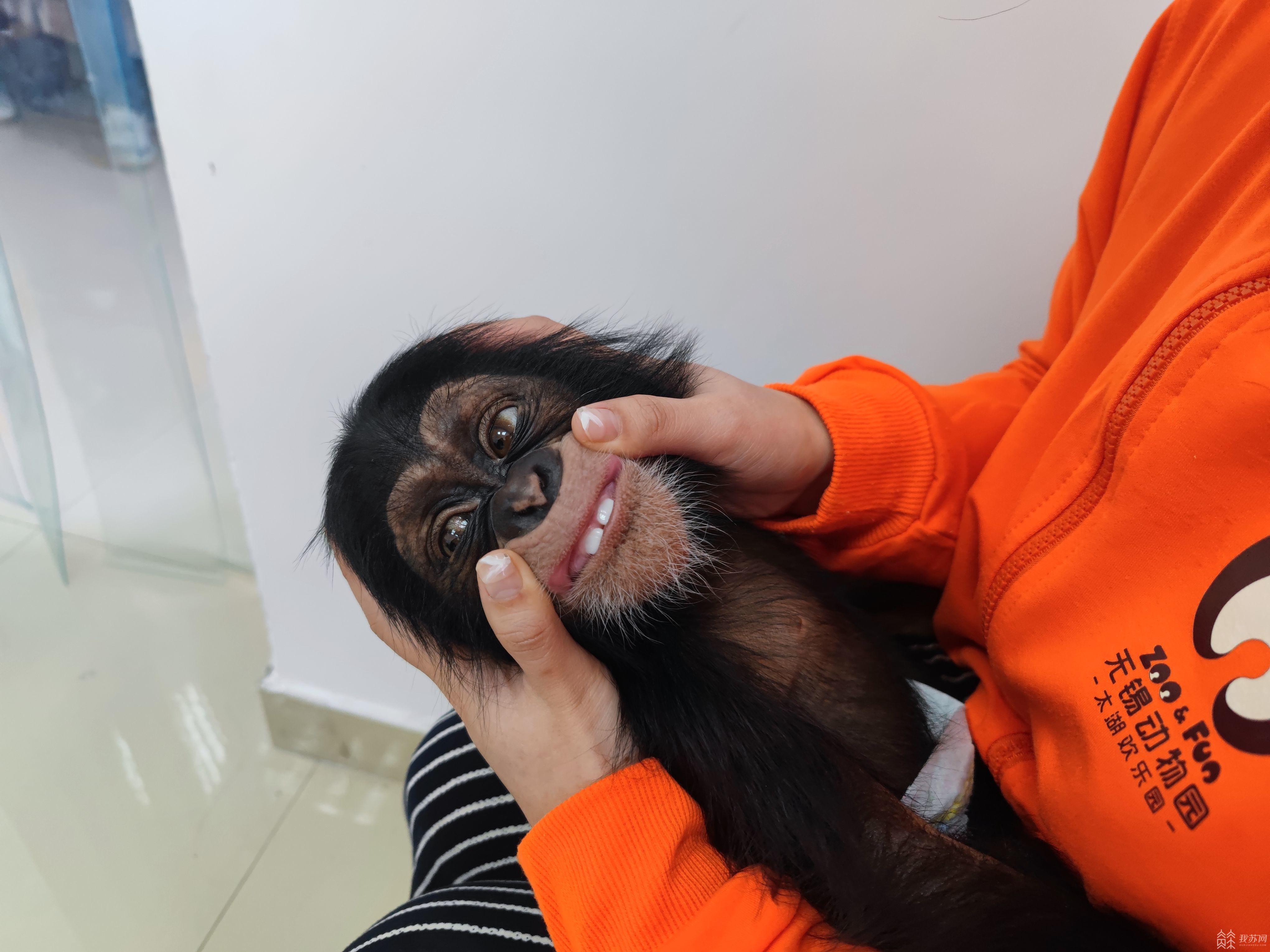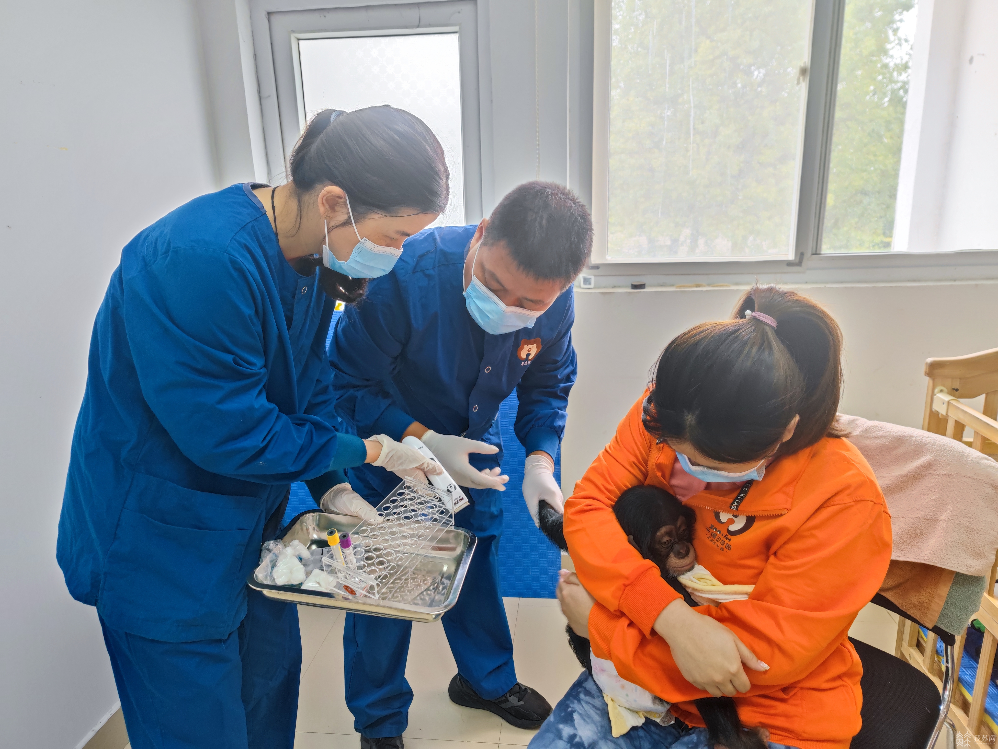 为园内最萌动物——黑猩猩宝宝 称体重、采血、查乳牙