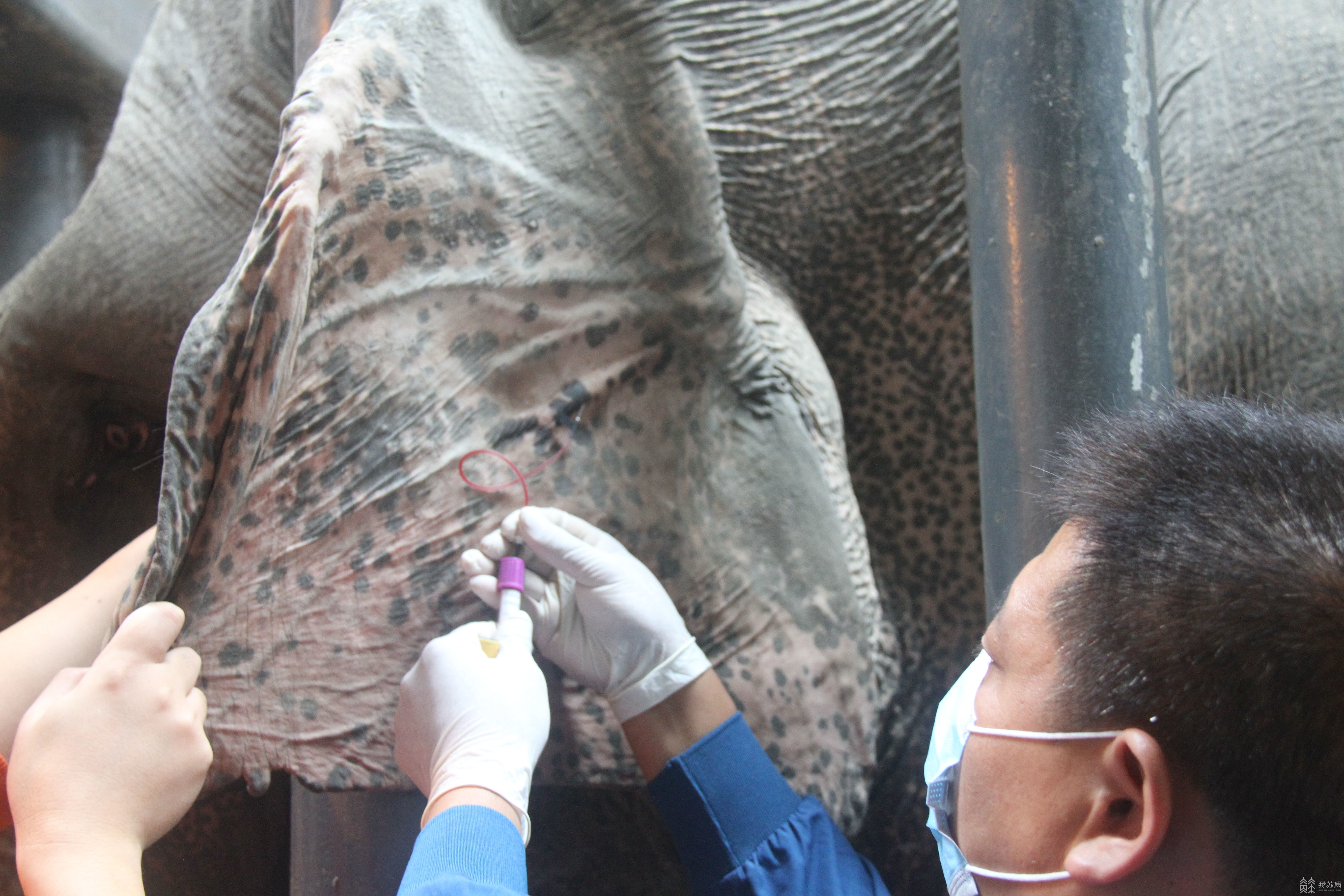 当天,兽医还为大象进行了耳缘静脉采血。经过一段时间的脱敏期,大象“悟悟”已经习惯兽医每月一次的采血工作。血常规和血生化的检查,主要是诊断血液疾病或者身体有无炎症、贫血或者凝血问题,可以给兽医提供治疗和诊断的依据。