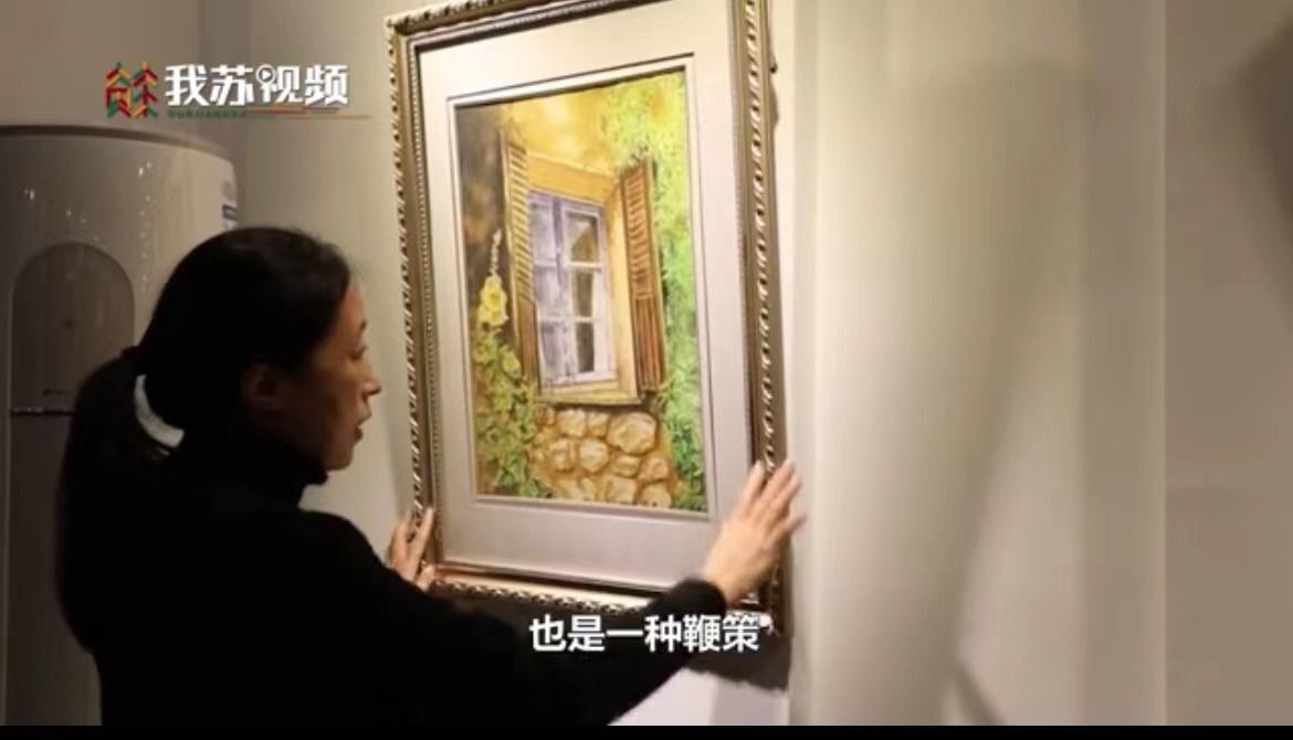 56岁的赵卫红是扬州一位卖菜大姐,闲暇时会在画板上涂鸦几笔,一直以来,梦想办一场个人画展。街道工作人员找到青年画家李同法作为策展人,一同为李大姐完成“画与烟火 人间值得”为创意的画展。如今,赵大姐还为农贸市场的孩子义务教学。