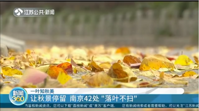 南京市民说:“不扫反映秋天的味道,秋天的味道很浓、很美。”