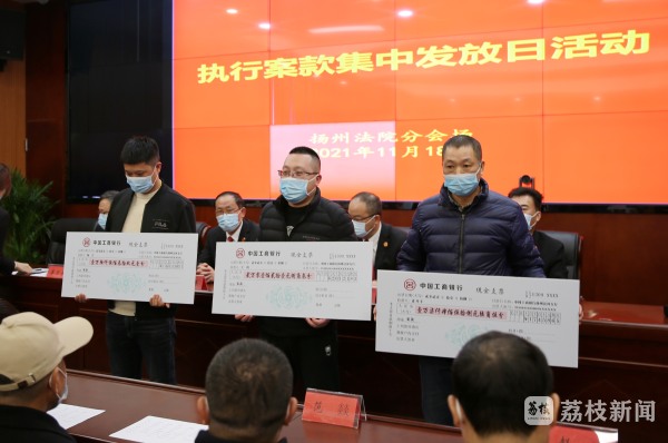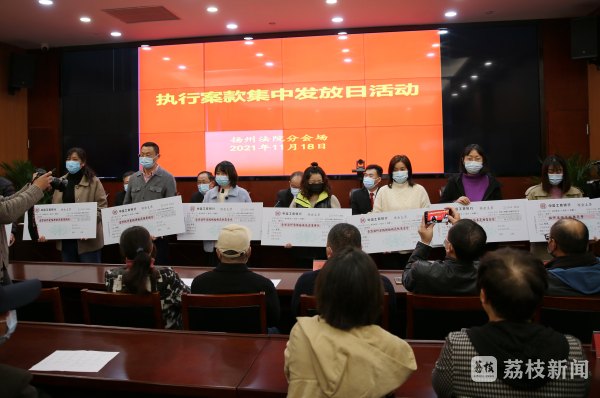 当天,扬州各县(市)区法院还设立5个分会场同步进行执行案款发放活动,涉及案件总数132件,以支票、现金形式发放执行款累计3038.69万元。执行案款发放活动坚持善意文明、阳光公开,全程采取媒体直播的方式,并邀请了18名人大代表、政协委员进行观摩和监督。扬州市中院执行局副局长宋晓波表示:“接下来还会加强涉民生领域案件的执行力度,争取让当事人安心过年。”