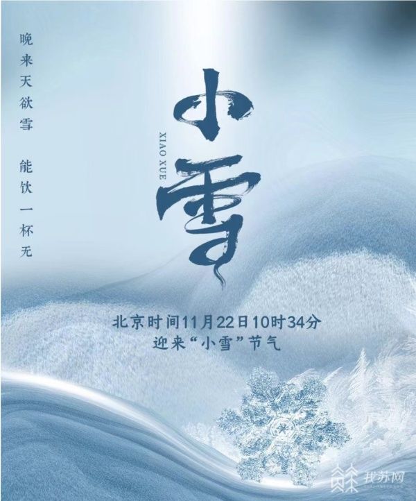 据我苏网 北京时间11月22日10时34分将迎来“小雪”节气。专家表示,此时节,冷空气活动频繁,降水量逐渐增加,并不断自北向南扩展,气温明显下降,公众应注意防寒保暖,提高机体免疫功能。详情>>