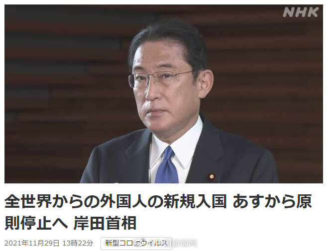 据日本广播协会(NHK)当地时间11月29日报道,日本首相岸田文雄宣布,受新冠病毒奥密克戎变异毒株的影响,从30日零时起暂停所有国家和地区外国人新的入境。