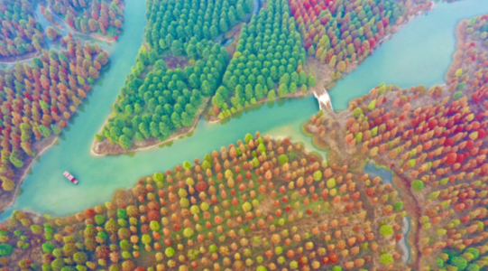 眼下,宿豫区新庄镇杉荷园内,百亩水杉层林尽染、美丽壮观,与清澈的河水交相辉映,犹如一幅浓墨重彩的油彩画。身在其中,仿佛置身于冬日的童话世界里。