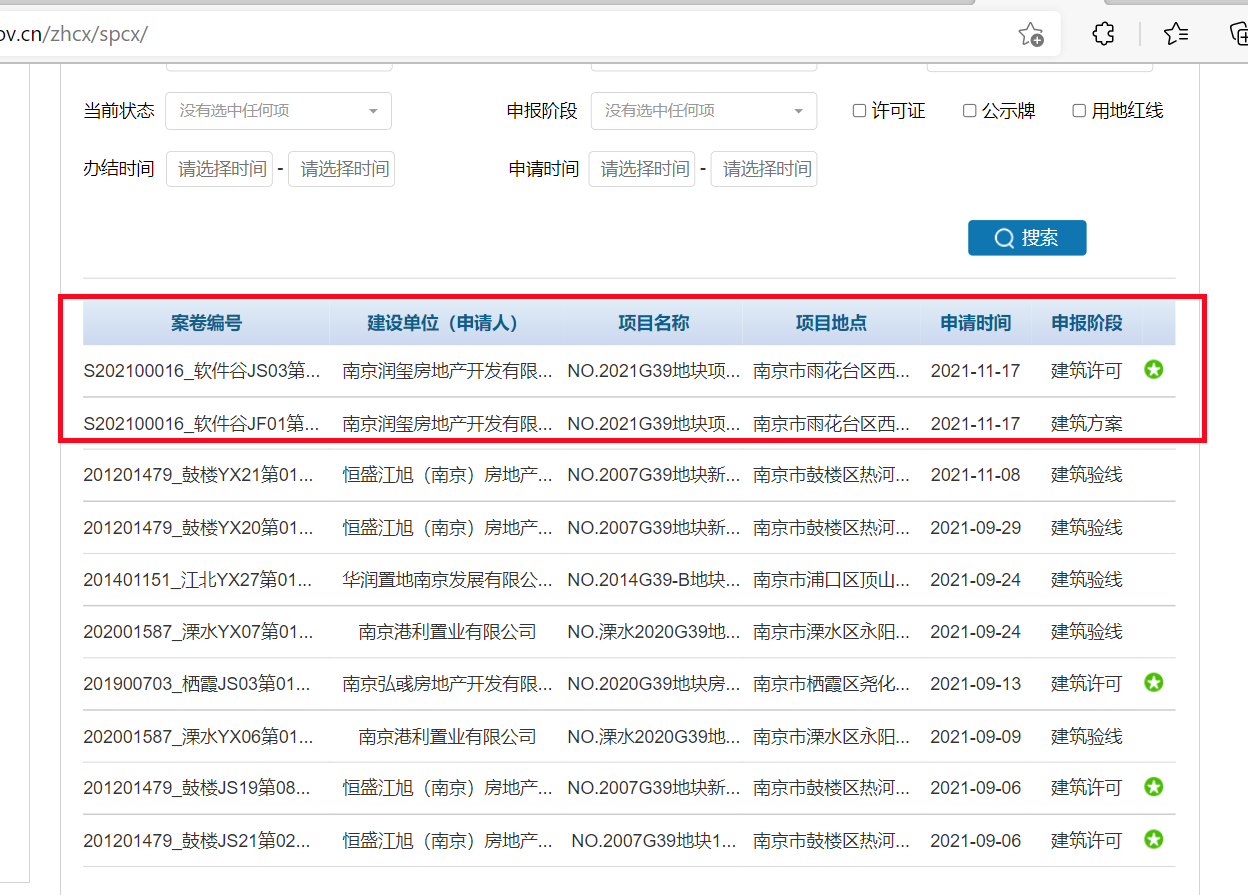 为进一步核实这一信息,我苏房产联系了雨花台区行政审批局的相关工作人员,询问华润G39是否已经申领施工许可,该工作人员表示由于该地块体量过大且涉及商业、办公、住宅等多个形态,地块性质较为复杂,因此项目审批事项由上一级的南京市城乡建设委员会来负责。