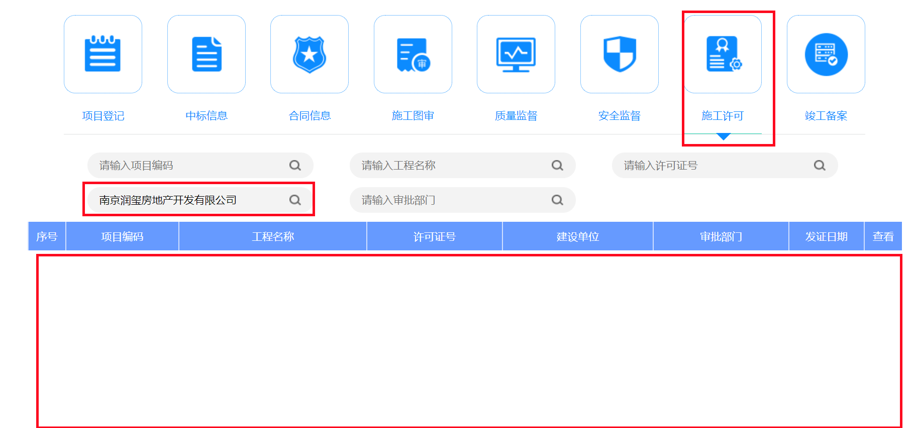 然而,在南京市建筑市场监管与诚信信息一体化平台上,无论是通过输入项目名称,还是通过输入建设单位进行查询,该项目的施工许可证都显示“查无此证”!