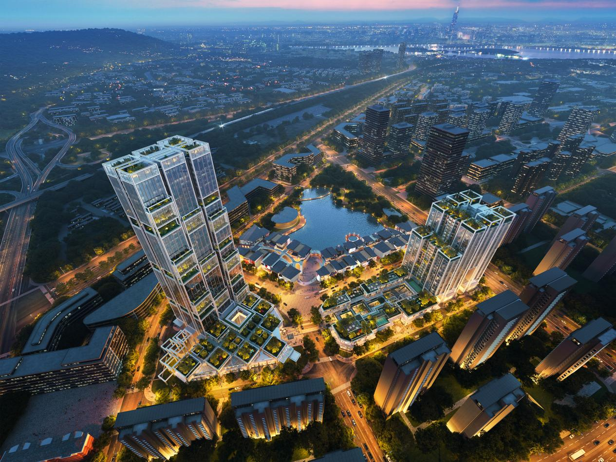 创新的手法,自然的设计语言亦沿袭自明日之城的未来理念,生长于紫金山下、玄武湖畔的城市共愿体,通过搭建自然与城市的桥梁,融合文化思维与国际潮流的在地表达,营造理想大宅、180M生态办公、六朝文化商业街、创新公寓丰富业态。