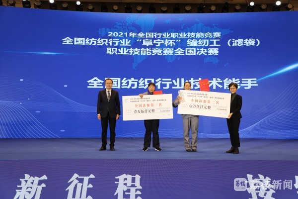 当天,还对全国纺织行业“阜宁杯”职业技能竞赛全国决赛获奖者进行颁奖。2021年全国行业职业技能竞赛——全国纺织行业“阜宁杯”职业技能竞赛全国决赛于12月6日至7日在阜宁县举行,本次活动由中国纺织工业联合会、中国就业培训技术指导中心等主办,中国产业用纺织品行业协会承办。本次竞赛选手在北部辽宁抚顺,东中部江苏阜宁和东南部浙江天台三个赛区举行了初选,从三个赛区36家企业选拔了67名选手进入全国总决赛。组委会对荣获前六名的选手,除颁发奖章、证书外,还分别给予2万、1.5万、1万元的奖励。对其他优秀选手也给予相应的表彰和奖励。