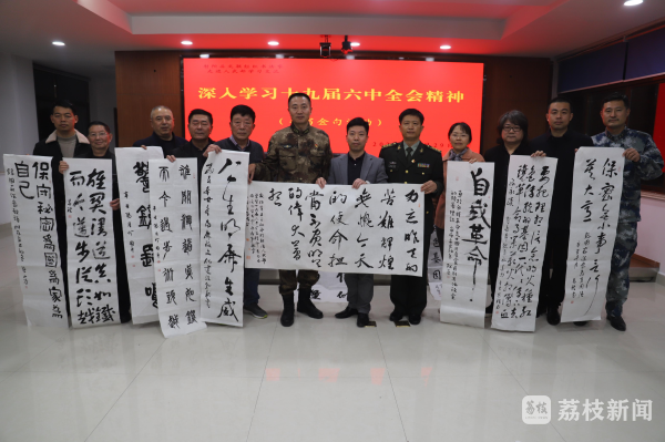 射阳县文联组织书法家走进该县人民武装部,向人武官兵传授书法技艺,分享多年来自身学习书法艺术的经历,并现场指导创作,把党的十九届六中全会精神融入书法作品中,相互交流。活动宣传了党的最新理论成果,丰富了人武官兵业余文化生活,潜移默化中坚定了官兵忠诚履行使命、献身强军实践的信心和决心。