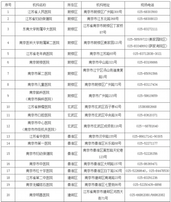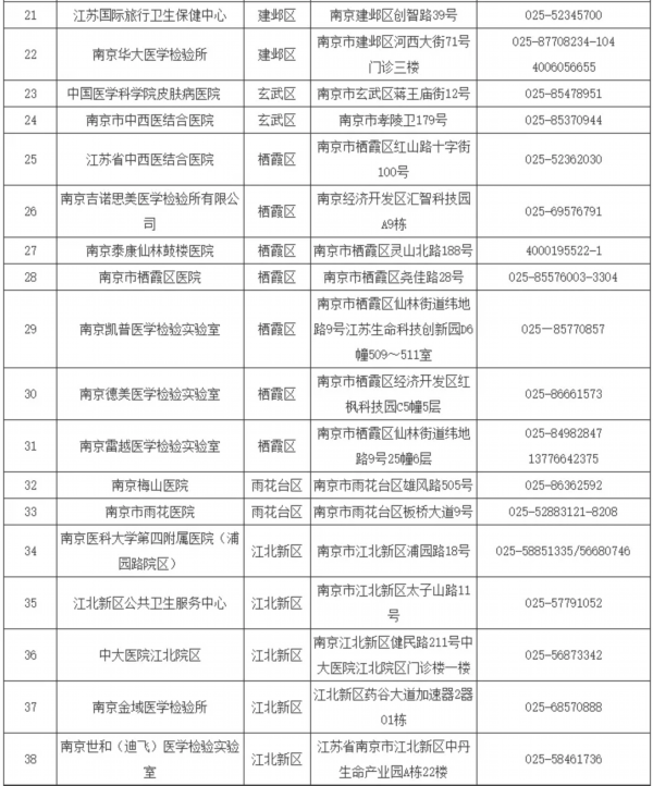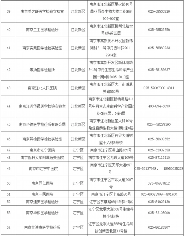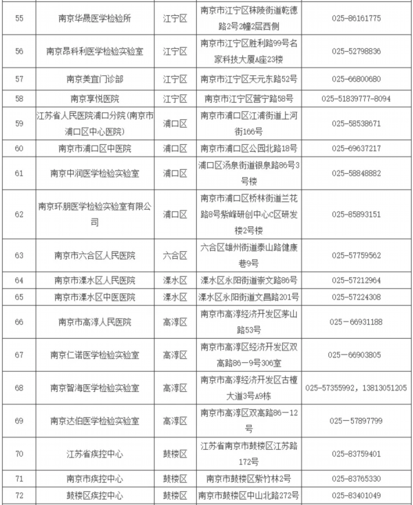 南京市具备核酸检测能力医疗卫生机构名单