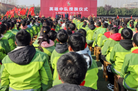 日前,东海县白塔埠中心小学结合党史学习教育,为全校51支英雄中队进行了授旗仪式,旨在更好地传承英雄精神,高举队旗跟党走。