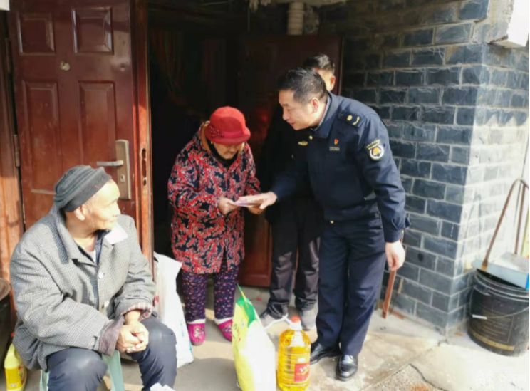 近日,邳州市城管局执法大队党支部对接东湖街道坝头社区走访慰问社区困难老人。支部党员们带上米、面、油等慰问品及慰问金前往困难老人家中,其中一位老人是老党员,因病瘫痪长期卧床,生活不能自理,全靠老伴照顾。支部书记庄栋永详细询问了老人的身体健康状况和生活饮食起居等方面的情况,特别叮嘱老人在家中要注意用火用电用气安全,最后宽慰老人保重身体,遇到困难要及时寻求帮助,老人非常感动,连声表示感谢。