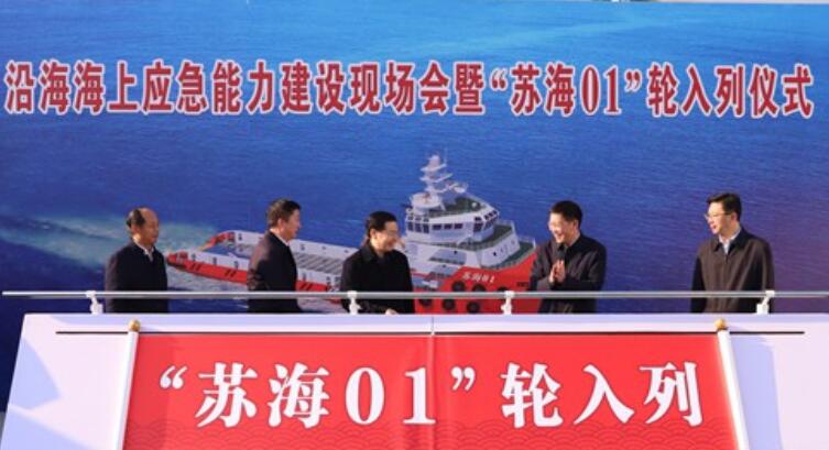 12月21日上午,江苏省沿海海上应急能力建设现场会暨“苏海01”轮入列仪式在南京五马渡码头举行。“苏海01”轮的列编填补了江苏自有大马力拖轮应急救援的空白,增强了海上极端恶劣天气的应对能力,进一步提升了江苏沿海海上应急保障水平,标志着江苏沿海海上应急保障能力建设迈出关键一步。