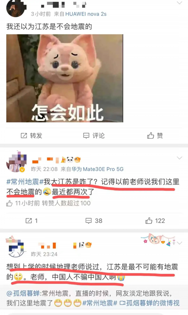 11月17号盐城大丰5级地震,加上这次常州的4.2级,不少小伙伴坐不住了,各种猜测。在这,小编要提醒大家:不信谣不传谣,防灾减灾意识要加强,地震自救知识学起来!