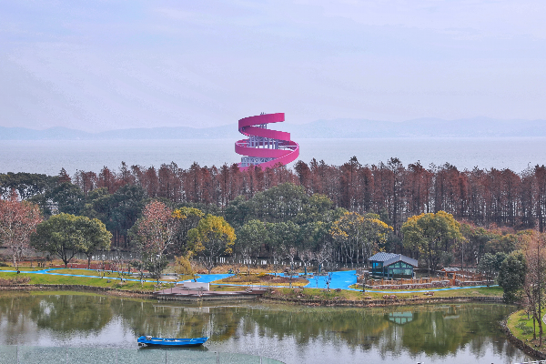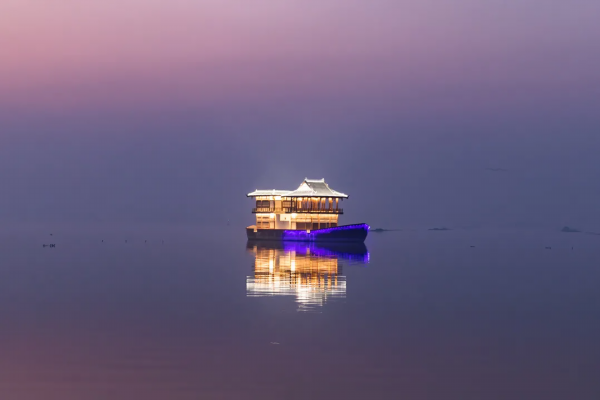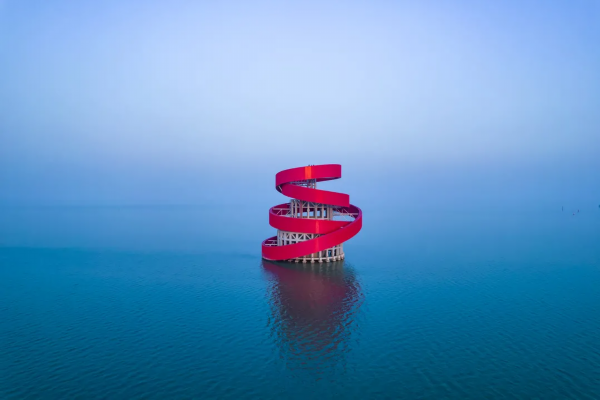 结合太湖天水一色、延绵无边的山水轮廓,引用诗人唐寅“太湖西岸景萧疏,竹外山旋碧玉螺” 和苏轼“明年我欲东南去,画舫何妨宿太湖”的诗句,在满足使用功能的条件下,将太湖隧道马山、南泉两侧的出风口,设计为 “碧玉螺”及 “画舫”造型的风亭并加以亮化,让两个风亭完美呈现在万顷绿波之间,打造梅梁湖水域两个新地标,营造太湖无锡水域一道靓丽的风景线。