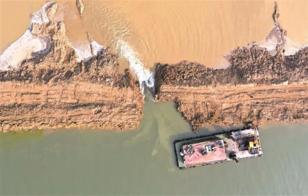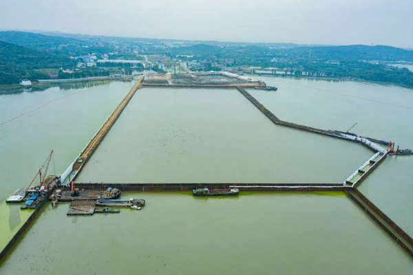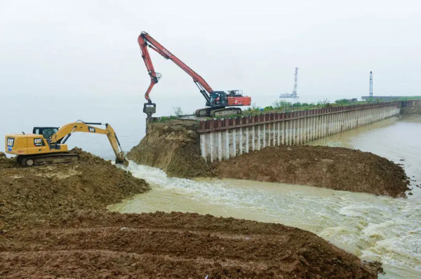 2020年10月3日,随着最后一根钢板桩插打至湖底,太湖隧道围堰顺利合龙。作为国内在建的最长的湖底水下隧道,自2018年3月13日首根钢板桩施打以来,围堰工程从大堤岸边由两侧向太湖中间不断推进,累计插打钢板桩6.8万余根,钢管桩4626根。历时2年7个月,马山段与南泉段在湖中无缝对接,成功实现第一次“牵手”。