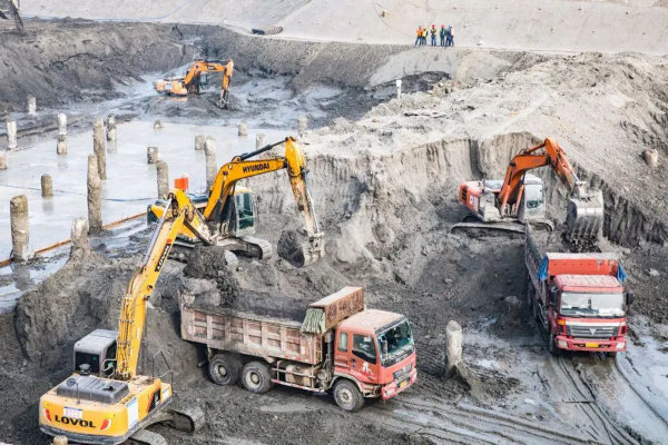 湖中围堰明挖,建设规模浩大,光钢筋用量就达33万吨,混凝土浇筑达200余万方,打设钢板(管)桩围堰总长4.2万米,基坑土方的开挖量达1000万方,用于填路基400万方,用于回填600万方。