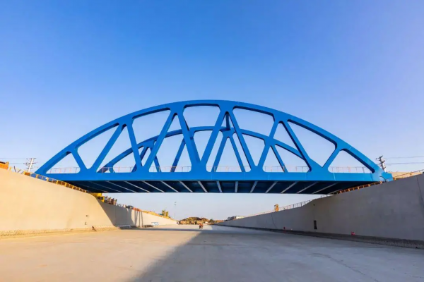 2019年8月24日,太湖隧道吴杨路钢桁拱桥顺利完成拼装。该桥建成后,将极大方便周边居民的出行。吴杨路上跨桥全长113.48米,高度14米,钢结构总重量550吨,横跨太湖隧道敞口段。其中主桥为主跨56.2米的下承式简支钢桁拱桥,下层为正交异性钢箱桥面,引桥为预应力混凝土现浇箱梁。