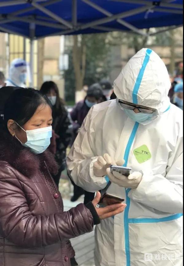 社区居民李娟说:“看到这么多工作人员,我们也很感动!为我们江阴的疫情防控速度点赞!”