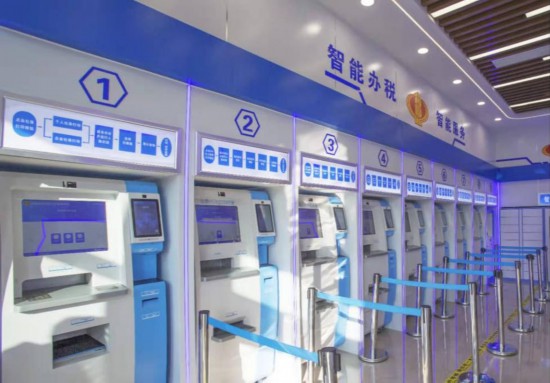 智慧办税服务厅给纳税人、缴费人带来了便民服务新体验,纳税人进入大厅,智能识别系统进行无感实名刷脸验证,实现一次采集、全面覆盖、全厅共享。办税厅设置了24小时自助办税区,配备的9台自助办税终端可实现专普票代开、发票领用、ukey发行等常用业务24小时自助办理。在智能导税区,纳税人通过“自主取票式导税”终端选择相应业务,系统将自动打印对应业务所需资料列表及流程说明,引导纳税人到指定区域办理,大大缩短办税时间。在网上办税体验区,纳税人可以登录使用常用涉税软件,在操作电子税务局时遇到问题,可通过电脑上的智能咨询功能进行在线解答。此外,大厅内的大数据展示平台通过数据实时统计分析,形成可视化的办税服务厅各业务指标数据分析成果,为税务部门改进服务水平提供数据支撑。
