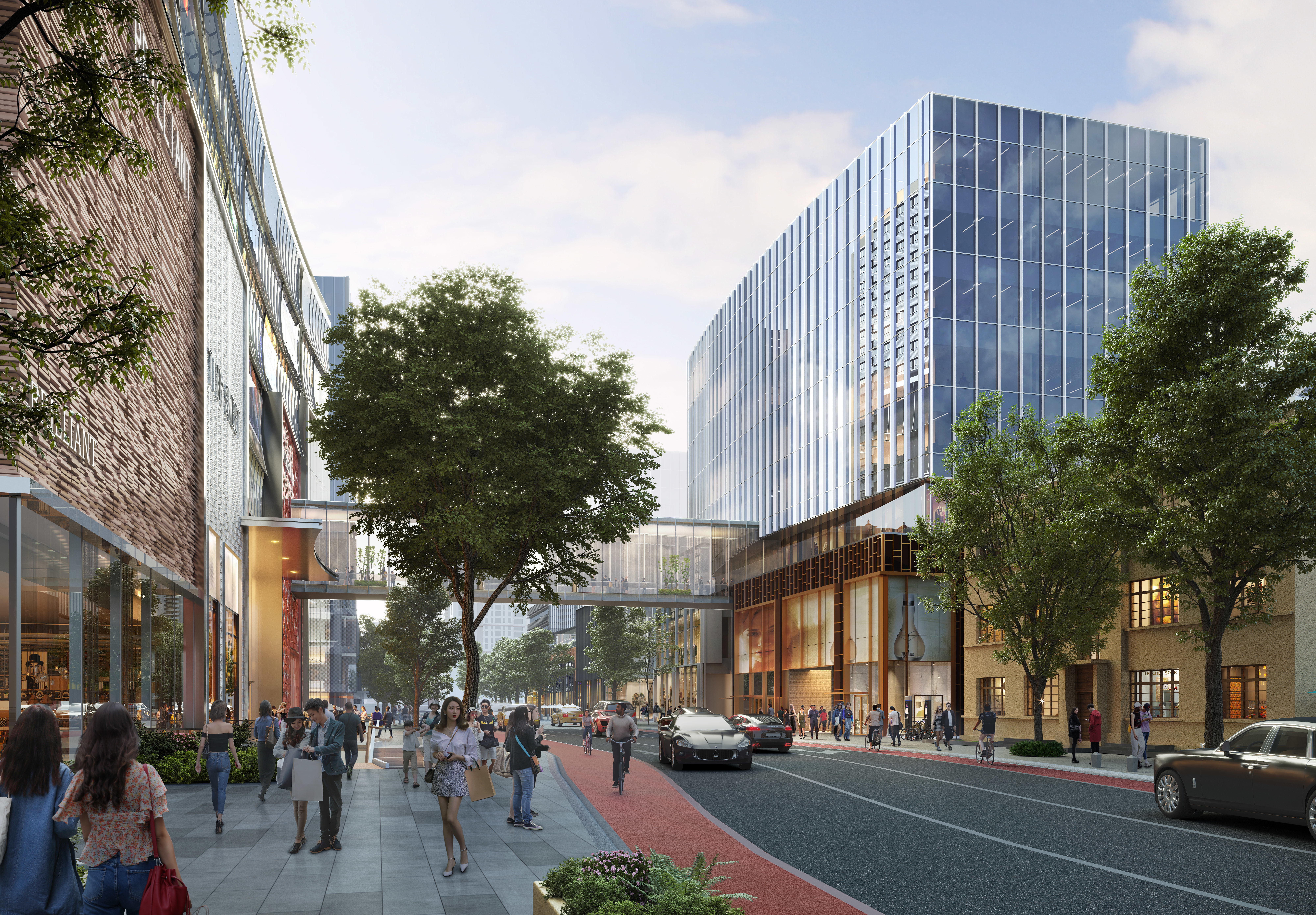 同时华贸中心在打造的过程中,怀着对历史敬畏的态度最大限度地保留了所在地块的特别记忆点:项目东北侧有4栋楼,曾是民国政府中央银行高级职员住所,这4栋文保建筑将会原址保留;地块前身是南汽项目,作为城市更新的一环,华贸希冀让城市记忆与未来生活合体,既保留通往历史的甬道,还能借由这处城市新地标,看到未来。