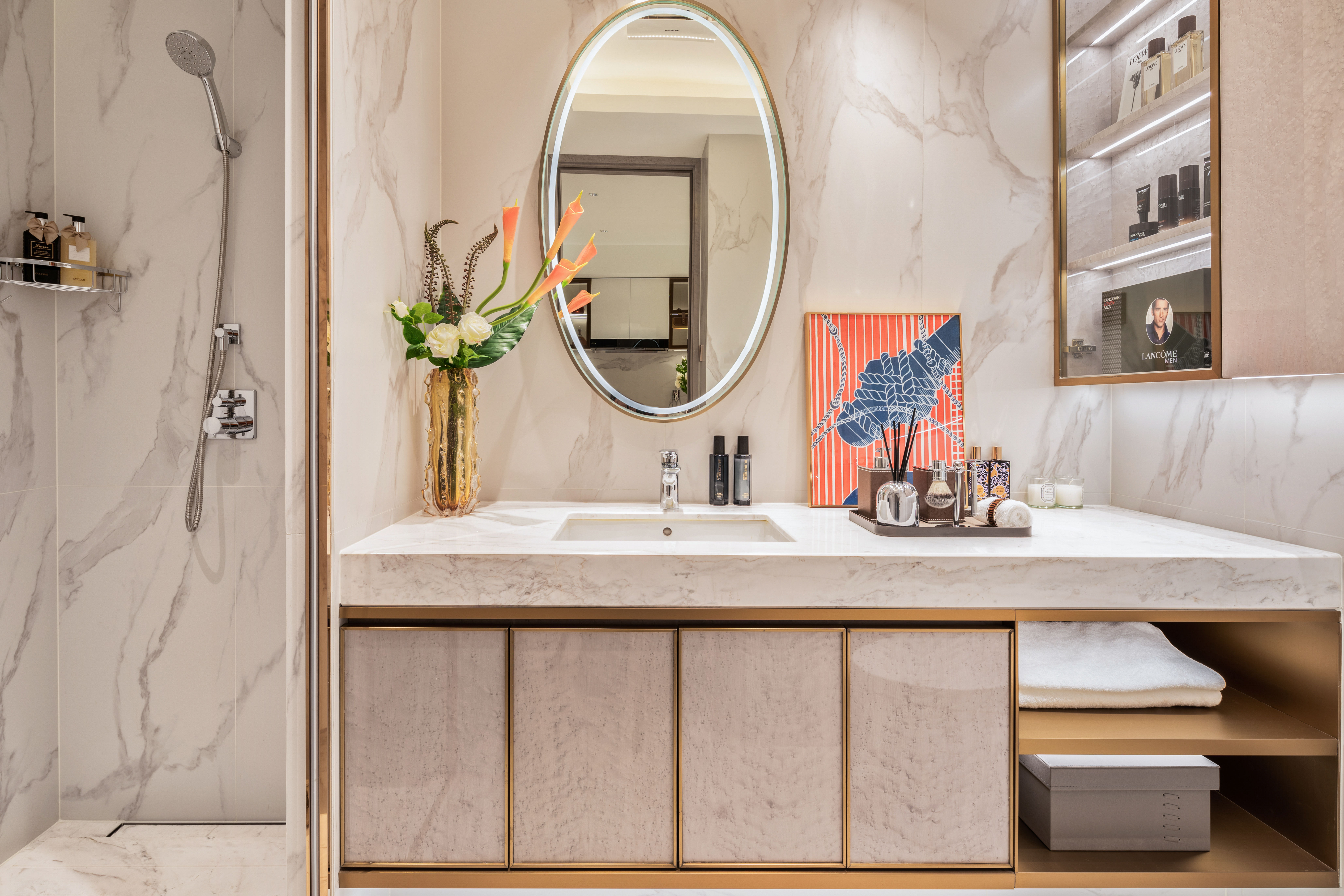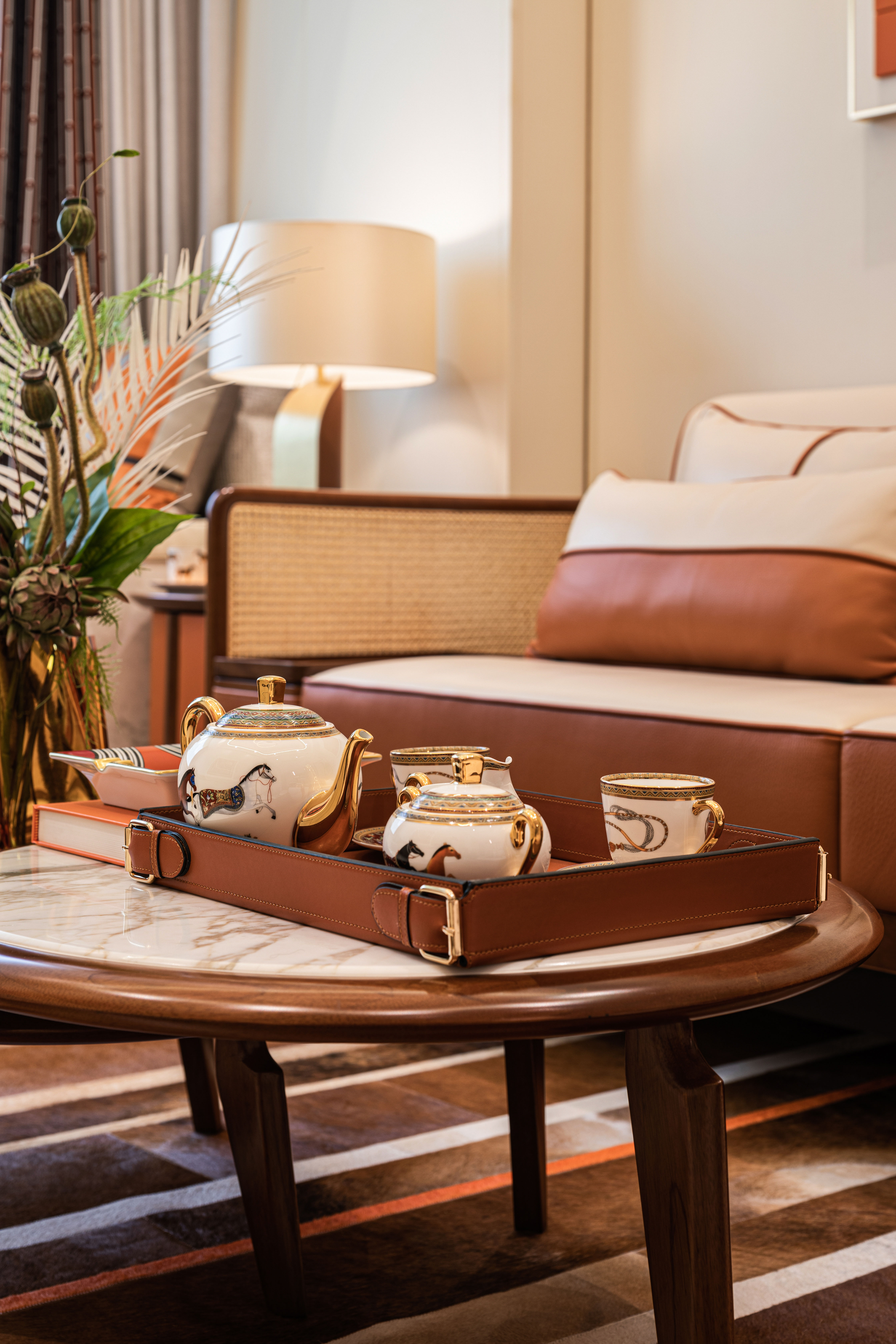 客厅地面选用昂贵的天然大理石,每一丝纹理都反复挑选,确保色泽和纹理的和谐统一,于细节处透露出无与伦比的贵雅气质。