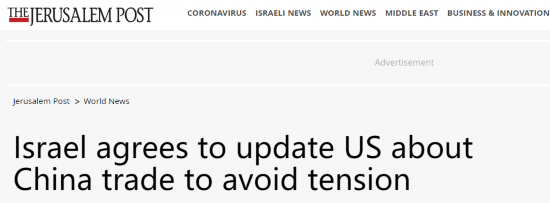 “以色列同意向美国通报有关对华贸易的情况,以避免紧张局势”,以色列《耶路撒冷邮报》3日报道称,在与美国的战略关系和与第三大贸易伙伴中国的经济关系之间继续保持平衡,将成为以色列2022年外交政策面临的主要挑战之一。