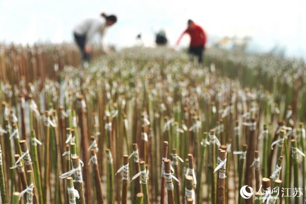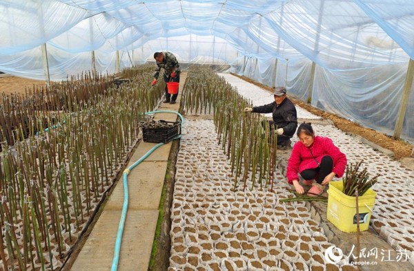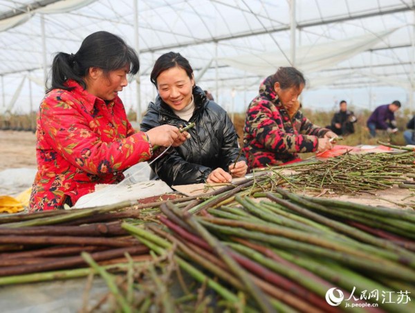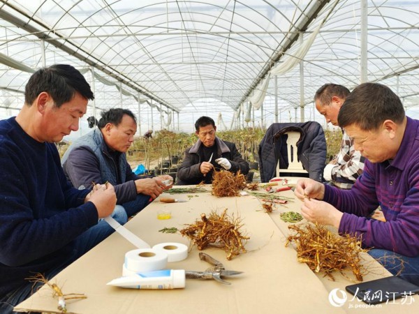 连日来,在江苏沭阳县新河镇堰头村月季产业基地的温室大棚里,花农正忙着嫁接树状月季苗和根接月季苗。目前,正是大棚花木嫁接的最佳时期,花农们抓住时机嫁接新苗,争取今年的月季生产再获好收成。据了解,从每年冬季到第二年开春,“花木之乡”沭阳县有2000余亩、近5亿株花木新苗需要嫁接。