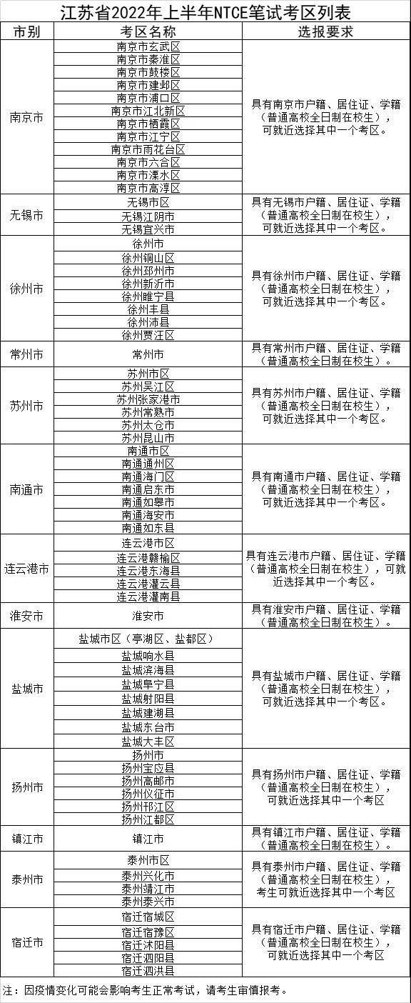 江苏省2022年上半年中小学教师资格笔试考区有这些!
