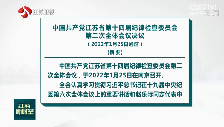 中国共产党江苏省第十四届纪律检查委员会第二次全体会议决议(2022年1月25日通过)