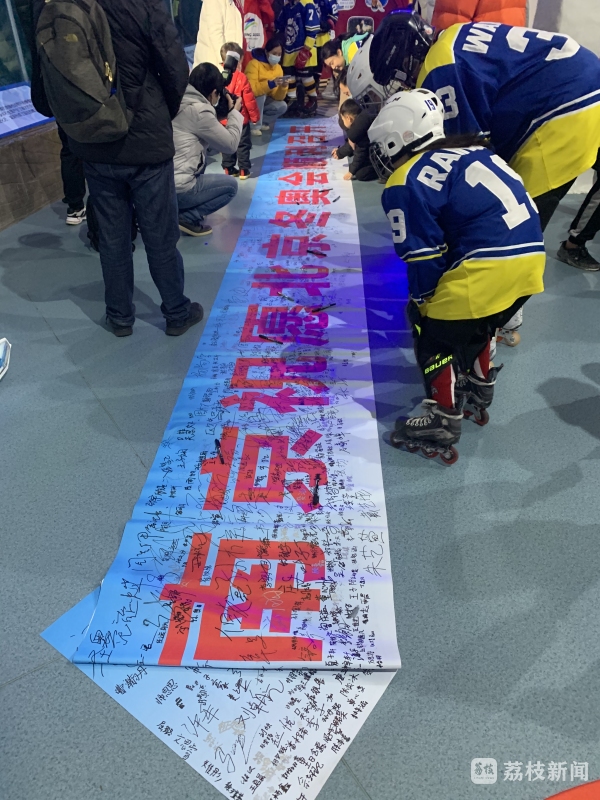 南京冰雪运动协会会长与老师们亲自分享冬奥精神与知识,并现场号召孩子们积极参加冰雪运动,在强健体魄的同时锻炼意志,感受运动带来的快乐与魅力。随后,南京海底世界与协会工作人员组织亲子家庭及游客一同在“南京祝福冬奥圆满成功”的横幅上签名,为北京冬奥加油助威。
