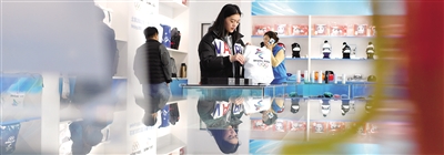 ⑥由冬奥组委授权的“北京2022官方特许商品零售店”之一的河北省广顺箱包工业有限责任公司户外用品实体店,顾客在挑选冬奥相关产品。冯 云摄(中经视觉)